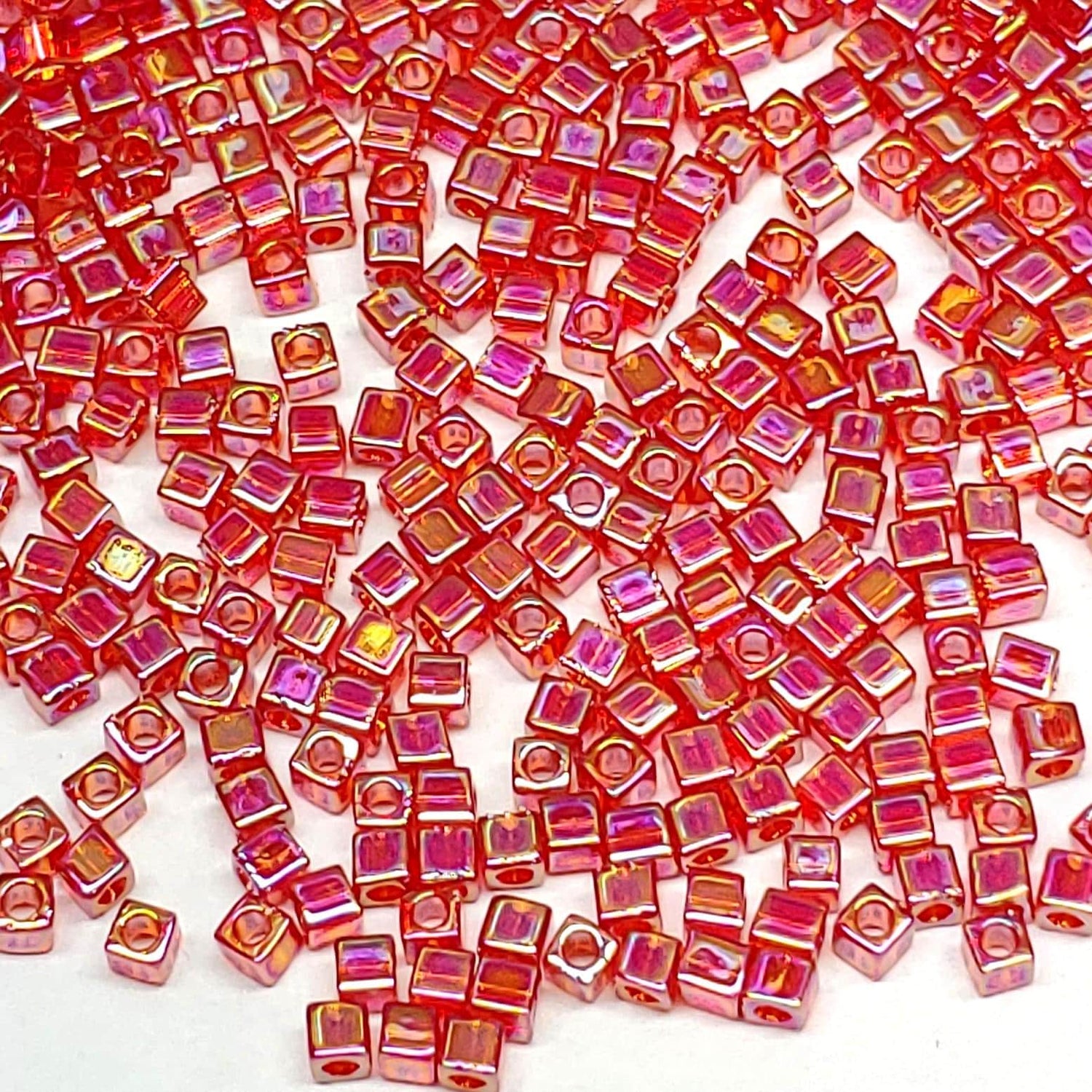 1.8mm Miyuki Cube Ruby Transparent AB SB18-298, 8 Grams
