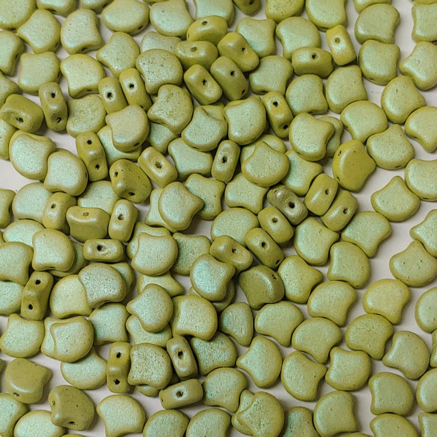 Ginko Bead Alucolour Linden Green, 2-Hole Czech Glass 7.5x7.5mm, 00030-33409-35 Beads