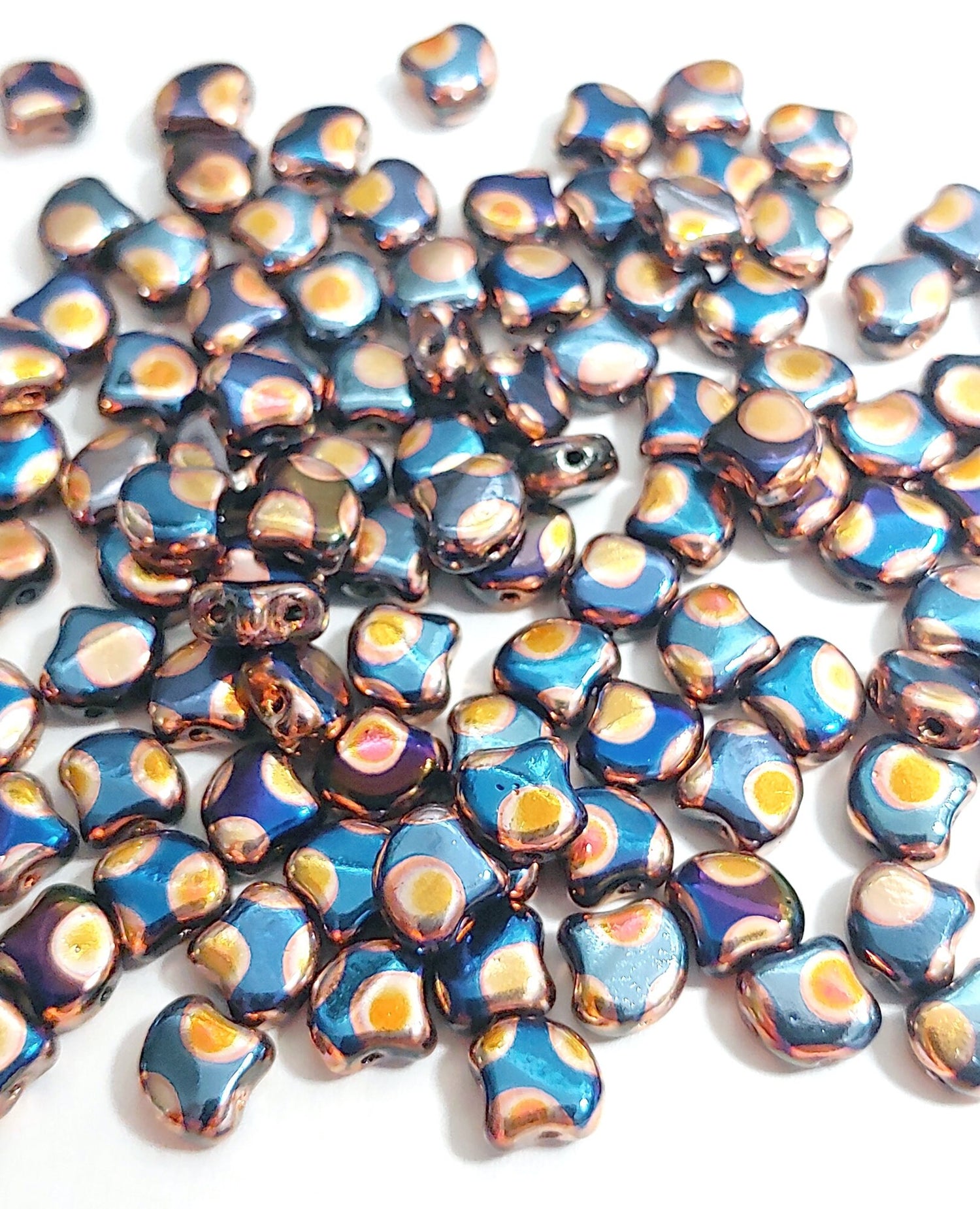 Ginko Bead Jet Blue Sun Dot, 2-Hole Czech Glass 7.5x7.5mm, 23980-27975-35 Beads
