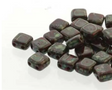 Tile Mini Red Dark Travertine, Czech Glass 2-Hole beads 5mm x 5mm, Qty 30 beads 93210-86805