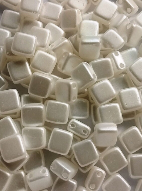 Tile Mini White Pearl, Czech Glass 2-Hole beads 5mm x 5mm, Qty 30 beads WHT