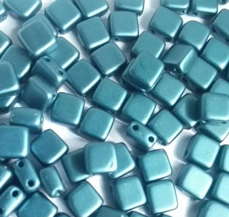 Tile Mini Pastel Petrol, Czech Glass 2-Hole beads 5mm x 5mm, Qty 30 beads 25033