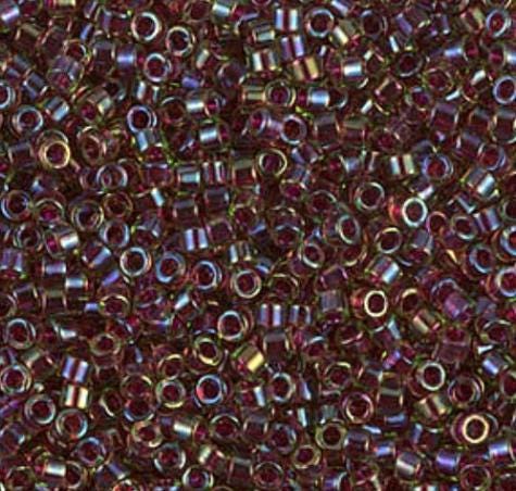 DB1748 11/0 Cranberry Lined Chartreuse AB Miyuki Delica